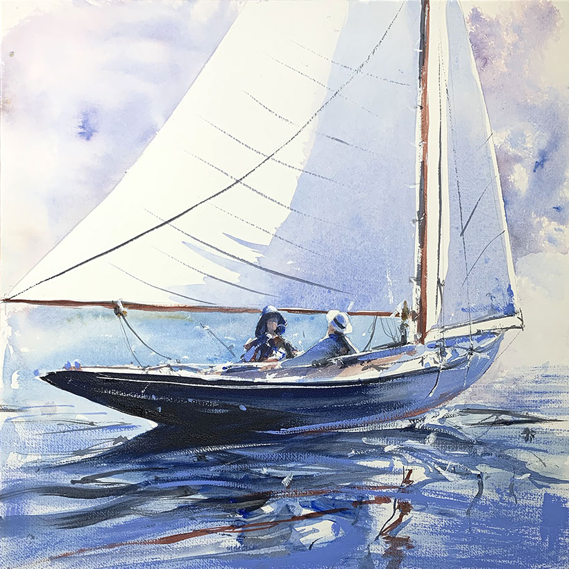 Yacht Passing Needles. 90 x 60cm