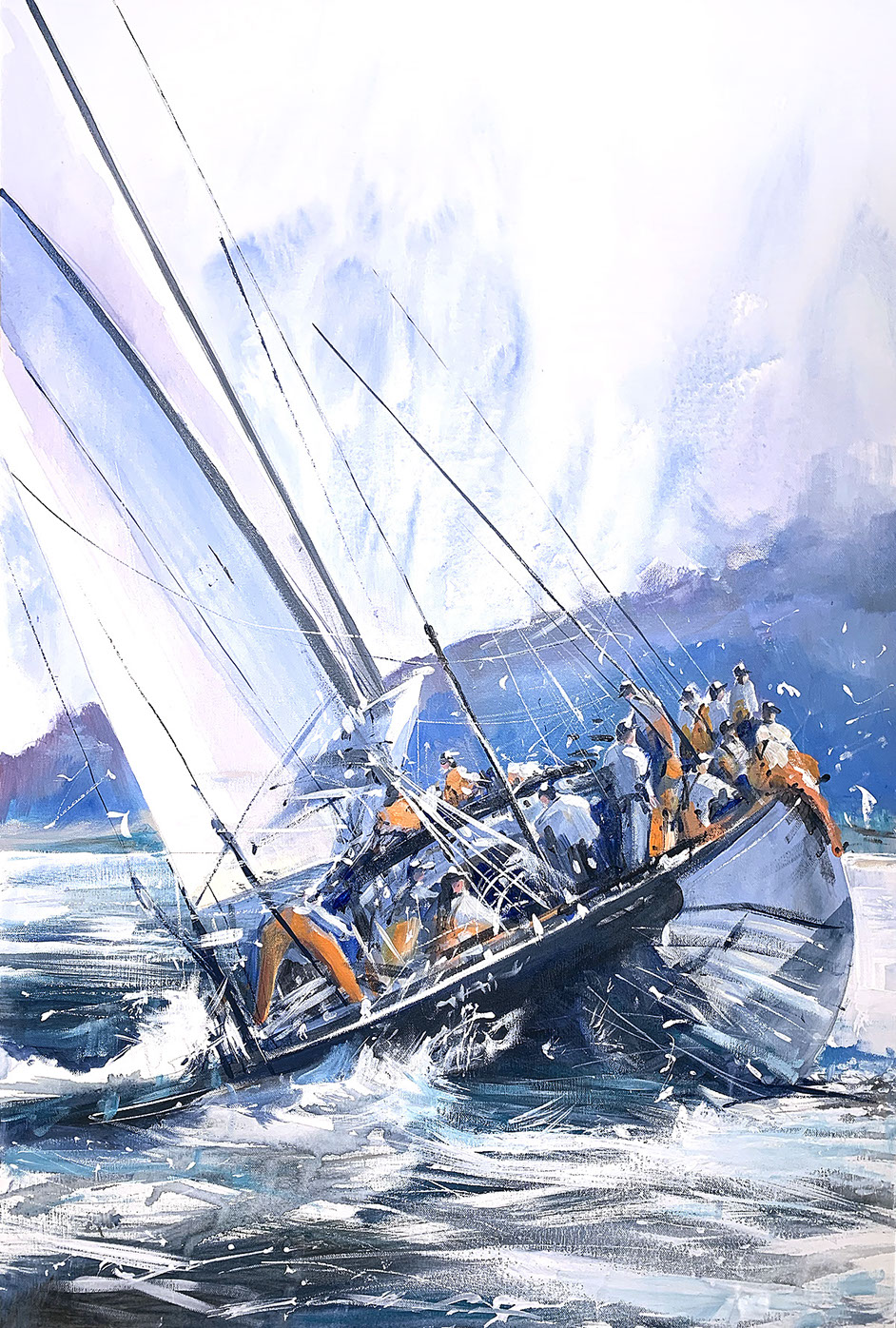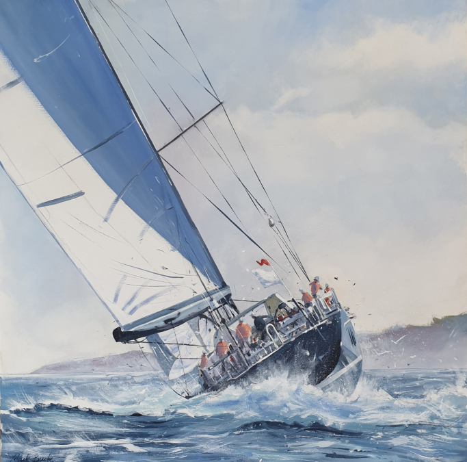 Racing Yacht in the Solent. 60 x 90cm